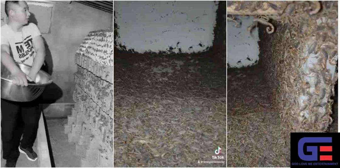 A daring Nigerian man has captured the attention of thousands online after sharing a video that revealed his extraordinary business — a large-scale scorpion farm where he breeds, handles, and extracts venom from hundreds of deadly scorpions for commercial sale.