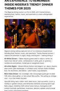 - “Why Lagos Nightlife Is Switching to Immersive Dining Experiences”