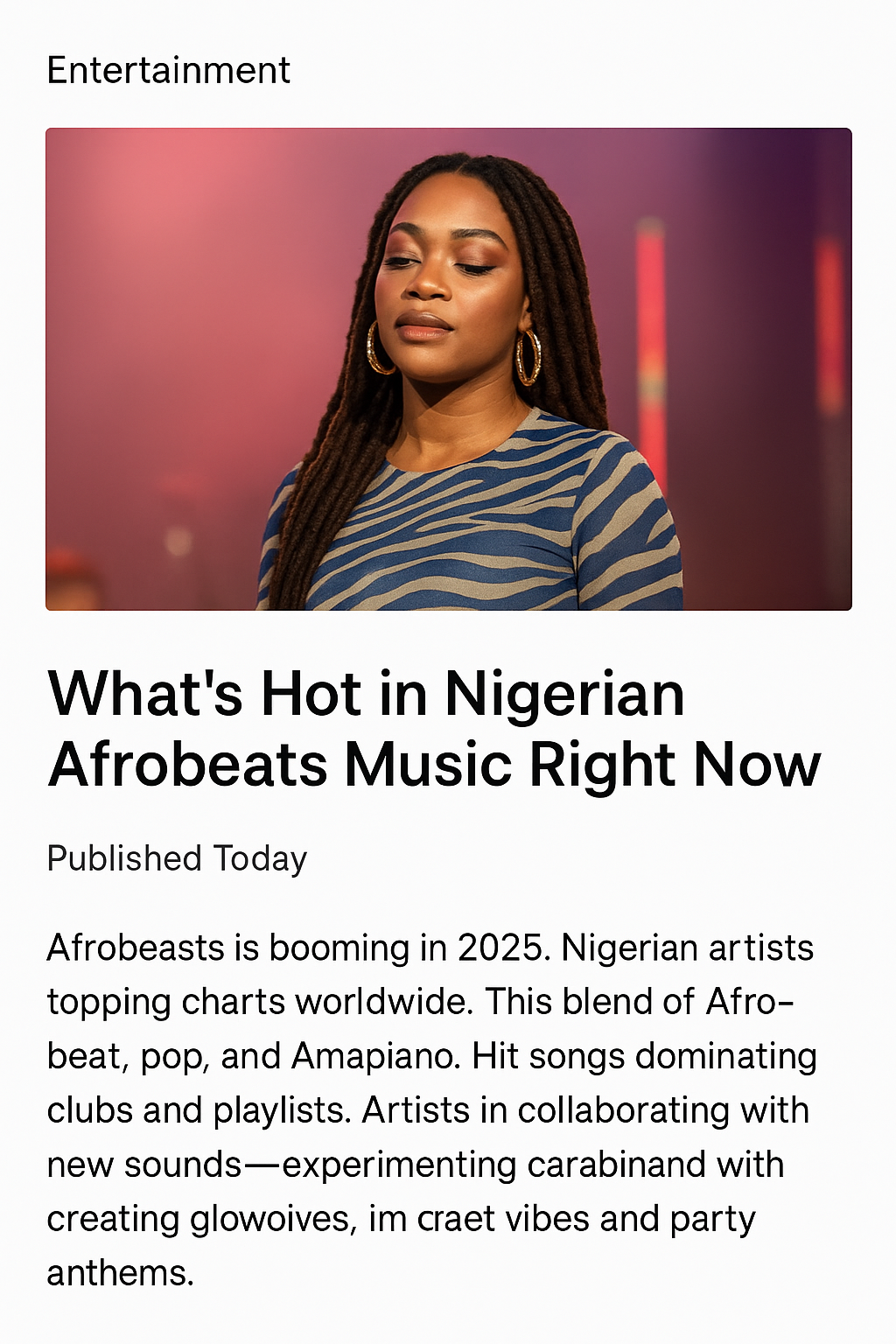 For your entertainment website, Afrobeats coverage is always top-performing. Readers love topics like: