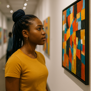The young woman in the article’s image — deeply focused as she observes a colorful abstract painting — perfectly represents this new wave of youth reconnecting with art in fresh and exciting ways.