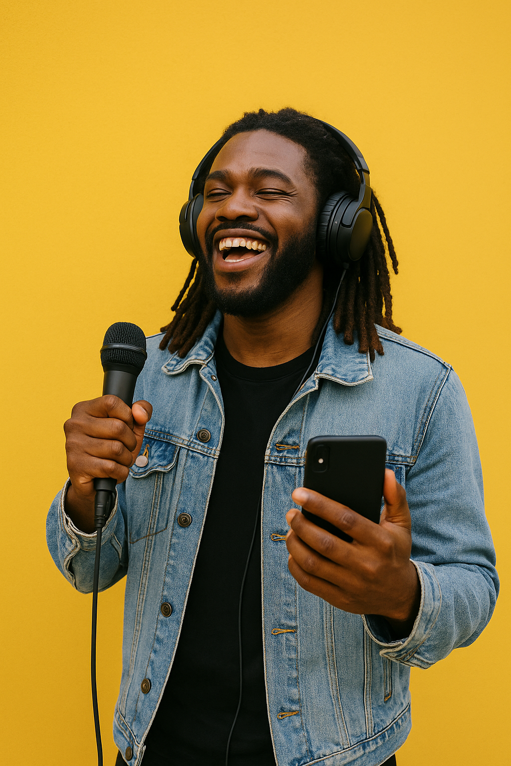 The young man in the image — smiling brightly with headphones on and holding a microphone — represents the new wave of Nigerian podcasters who mix authenticity, humor, and modern storytelling to create highly engaging content.